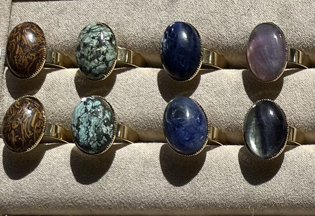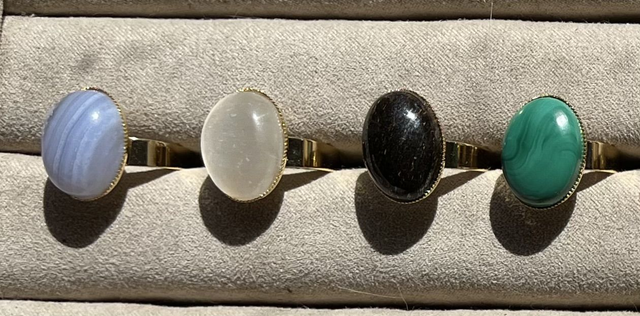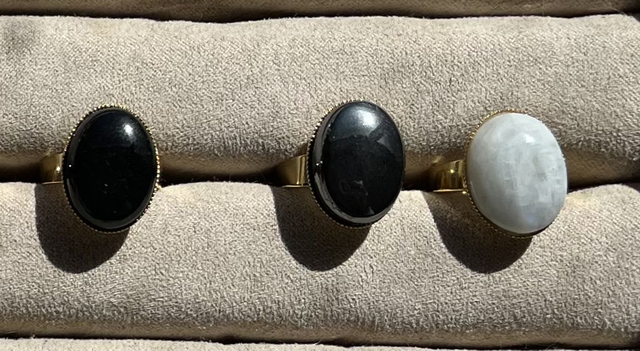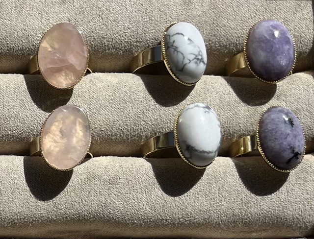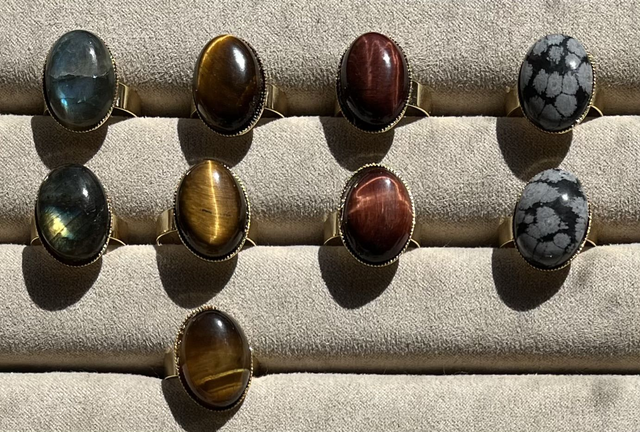 Bague Réglable Acier Inoxydable Doré et Pierre naturelle
