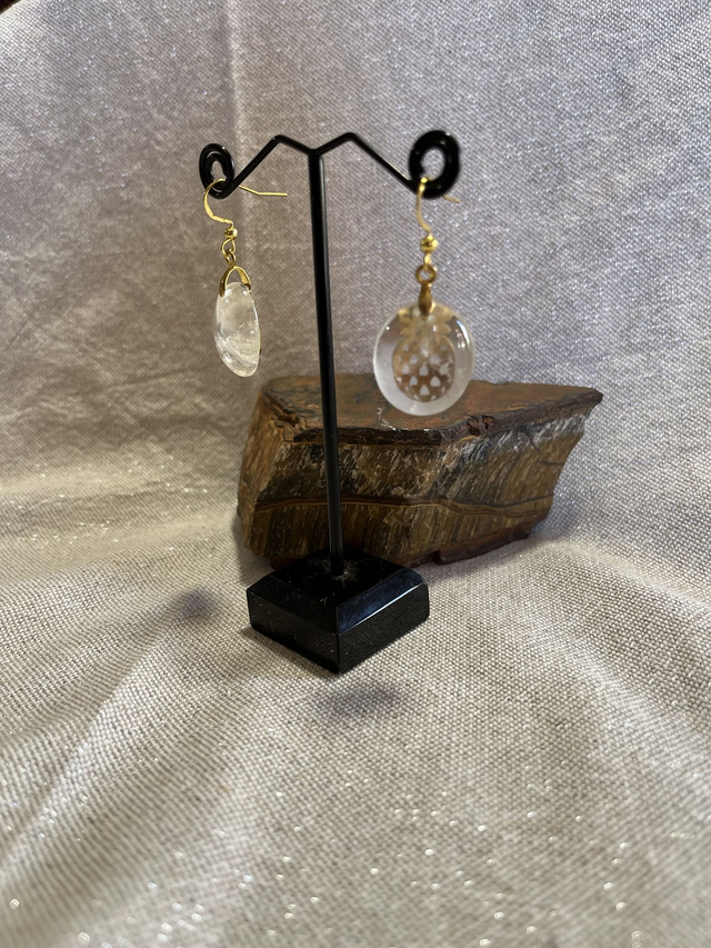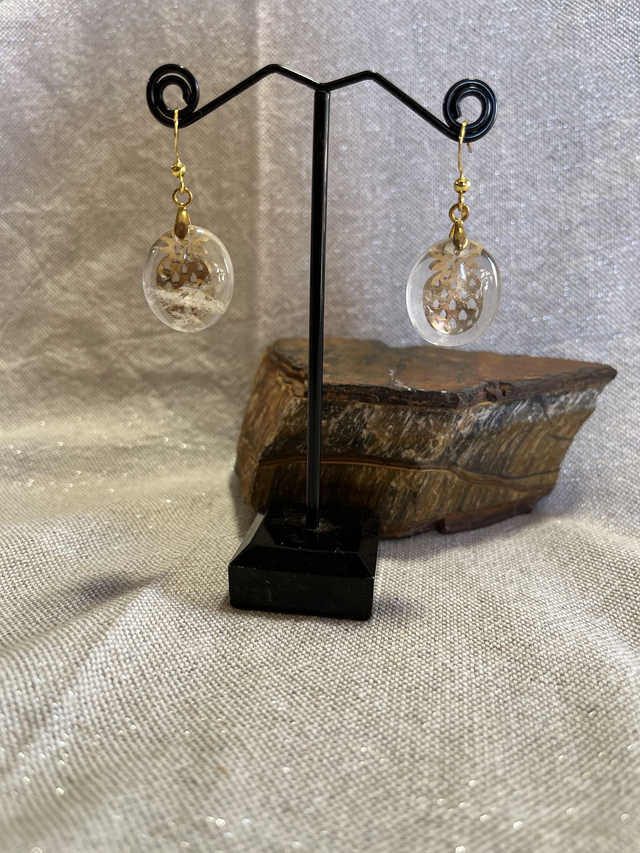 Boucle d'oreilles Cristal de Roche avec Ananas doré