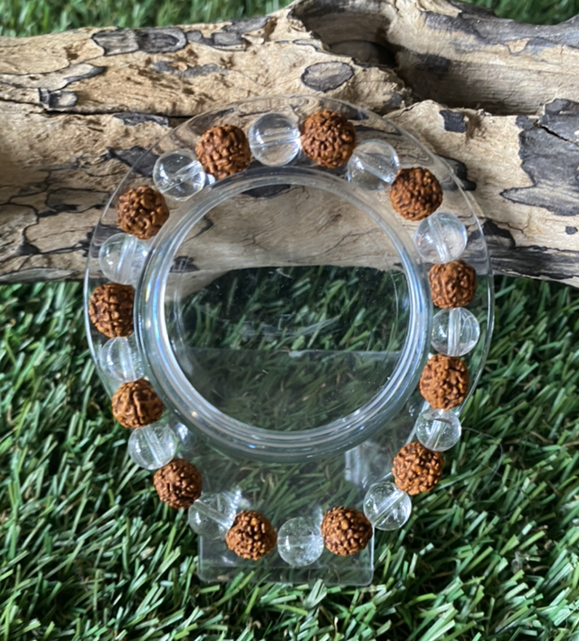 Bracelet Graine de Rudrashka et Cristal de Roche en perles 6mm